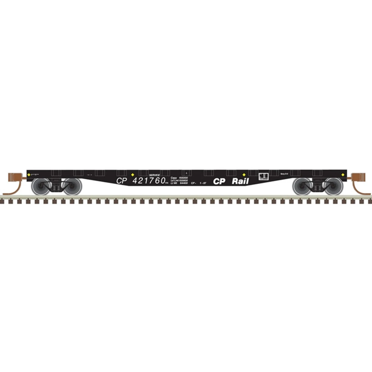 PROTOTYPE INFORMATION: The Atlas Trainman 50’ Flat car represents a general purpose flat car built in the 1950s. It could be found hauling many different types of commodities. The pockets along the sides of the car could be used for holding down cargo with chains or straps. Optionally stakes could be inserted into these pockets to help contain irregular loads such as logs.