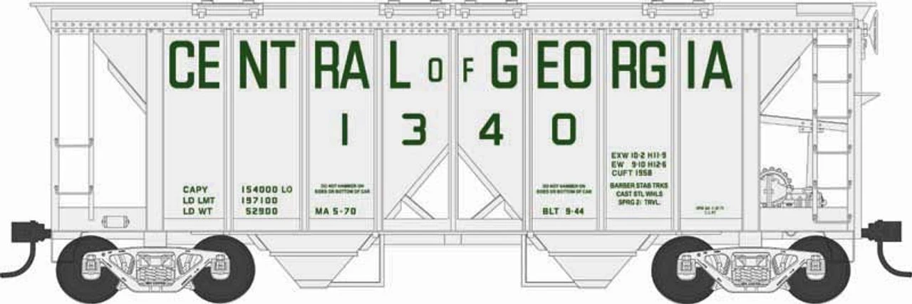 Bowser 43252 HO Scale Central Of Georgia Blt 9-44 H34 Covered Hopper #1345