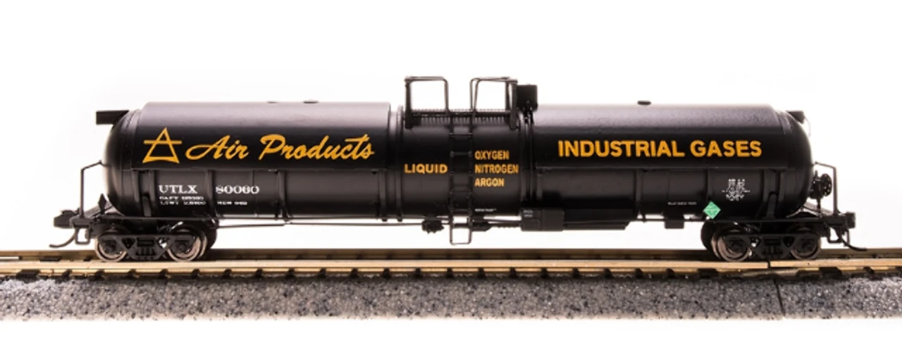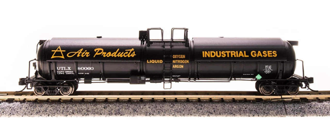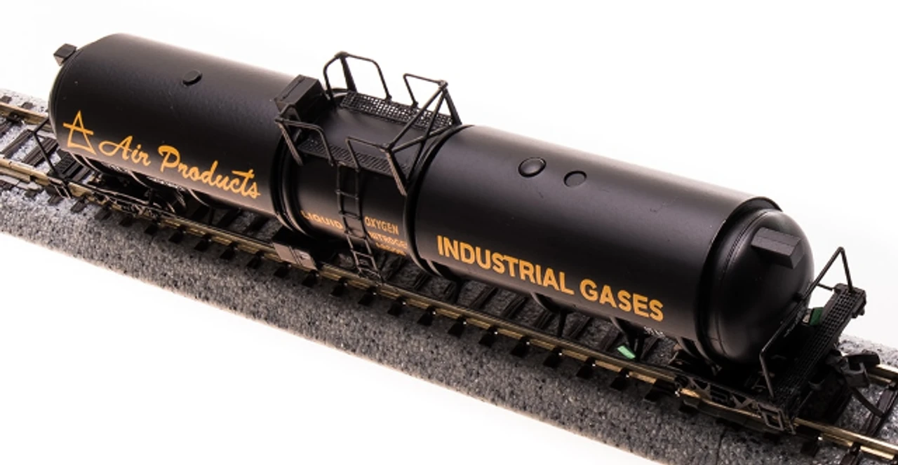 This is a Broadway Limited 3721 N Scale AirPro Cryogenic Tank Car (Pack of 2). It Features: Precision Paint Color and Lettering Schemes. Many Separately Applied Details including Hand Rails ladders brake wheel roof walkway. Beautifully Detailed and Accurately Modeled. Precision Paint Color and Lettering Schemes. Composition: ABS. Couplers: (2) Operating MicroTrains Compatible. Compatible Tracks: Code 55 70 and 80 Rail. Minimum Operating Radius: 9.75 in.