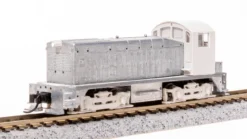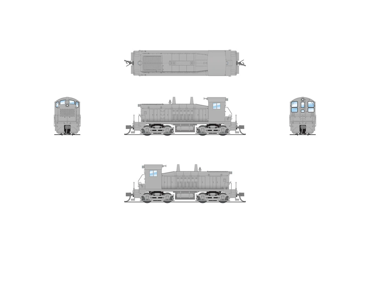 From February 1939 through December 1949, the General Motors Electro-Motive Division built 1,145 EMD NW2 1,000 horsepower switcher locomotives. The NW2 was widely popular, with more than fifty Class 1 railroads purchasing more than 1,100 NW2’s. They were also popular with industries, and several were purchased by the US Navy. The NW2’s were EMD’s new 12-cylinder, 567A prime mover. The NW2 was 44 feet long and equipped with the standard B-B truck arrangement. Typical distinguishing features of the NW2 switchers include two stacks in the middle of the hood, a half-height radiator grill on the front, no sand box on the front platform, no small louvers at the front corners, and the tops of the front cab windows are curved to match the curve of the roof. Our model is of the phase V locomotives. The main difference between the Phase V and the Phase 1-4 NW2’s is the slope of the long hood just ahead of the cab.