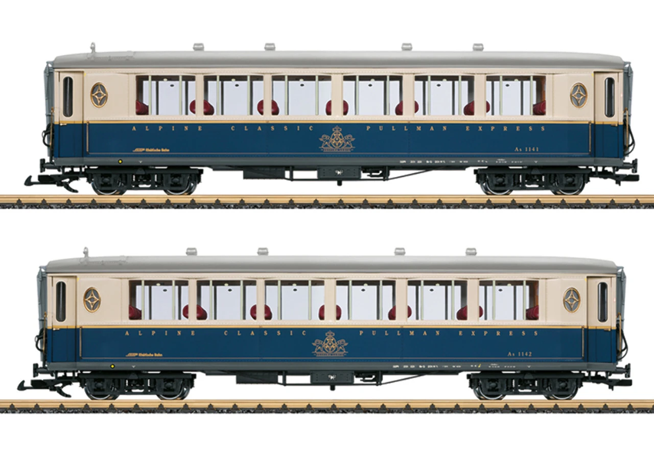 These cars run in the summer season on the route from Davos to Filisur with the Crocodile, of which two locomotives are still in use. The locomotives from the LGB program to go with these cars are available under item numbers 23407, 26600, and 26601.