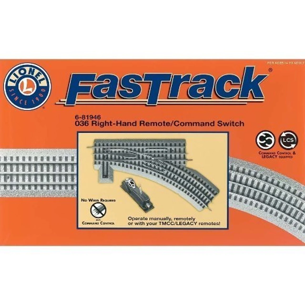 COMMAND SWITCH FeaturesFlawless, non-derailing function allows trains to keep running regardless of switch positionAuxiliary power and TMCC(tm) (ASC and SC-2) terminals are conveniently located under the roadbed base, making all connections invisible from aboveRealistic illuminated switch lanternLantern base is interchangeable, can move to the right or left side Dimensions: Length: 14 1/2″ straight/22 1/2-Degree turnout w/ Removable 1 3/8″ extensions WARNING: CHOKING HAZARD – SMALL PARTS! NOT INTENDED FOR CHILDREN UNDER 3.