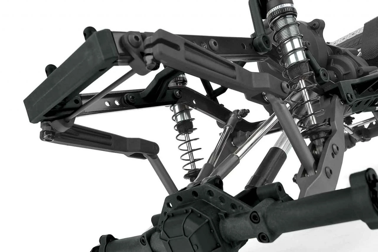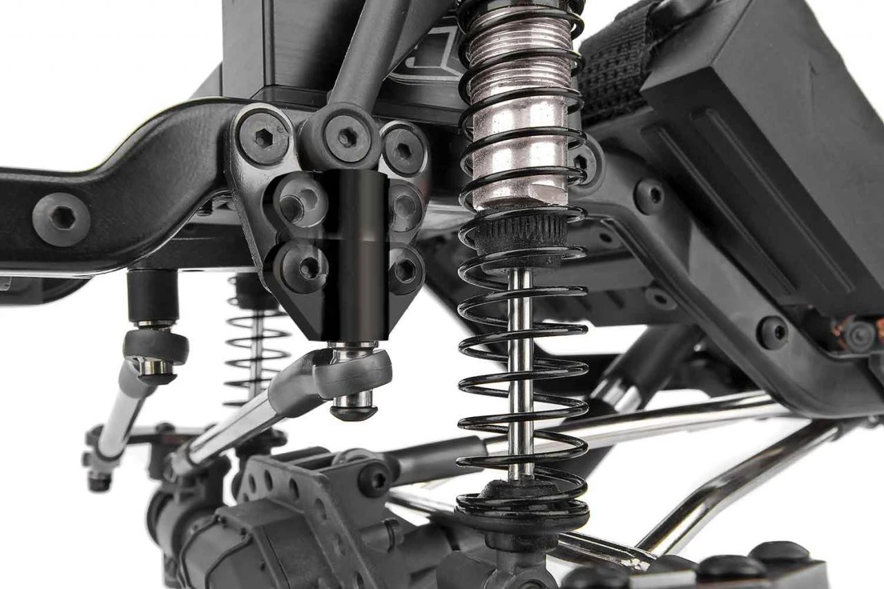 What makes the Enduro Ecto Trail Truck special? The Gatekeeper Suspension package (GKSTM)! The GKSTM package consists of rear trailing arms that move the shocks forward, allowing a larger window for shock tuning and providing improved weight bias. The trailing arms are paired with a rear anti-roll bar for a more stable and consistent suspension when crawling on the rocks. An adjustable aluminum track bar mount firmly bolted to the chassis rail gives the Enduro Ecto more reliable and responsive steering without the flex. Our shock mount inserts with multiple mounting positions allow for precise suspension tuning, whether they’re moving the shocks up, down, forward, or back.