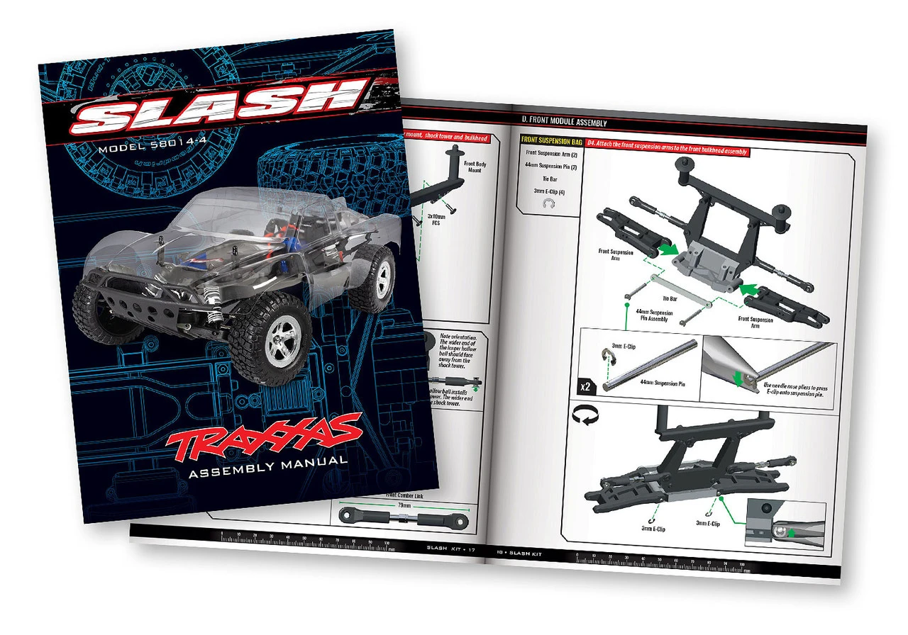 The Slash 2WD Assembly Kit isn’t just for expert hobbyists. Traxxas goes the extra mile to make the full-color instruction book easy to follow and fun to use. Each section corresponds to a labeled bag with step-by-step assembly instructions. True-to-scale part illustrations and ruler charts make it easy to differentiate between different screws, bearings, and gears. Helpful assembly tips and clear illustrations take the frustration out of the assembly process. Have fun on the workbench and in the dirt with the new Slash 2WD kit.
