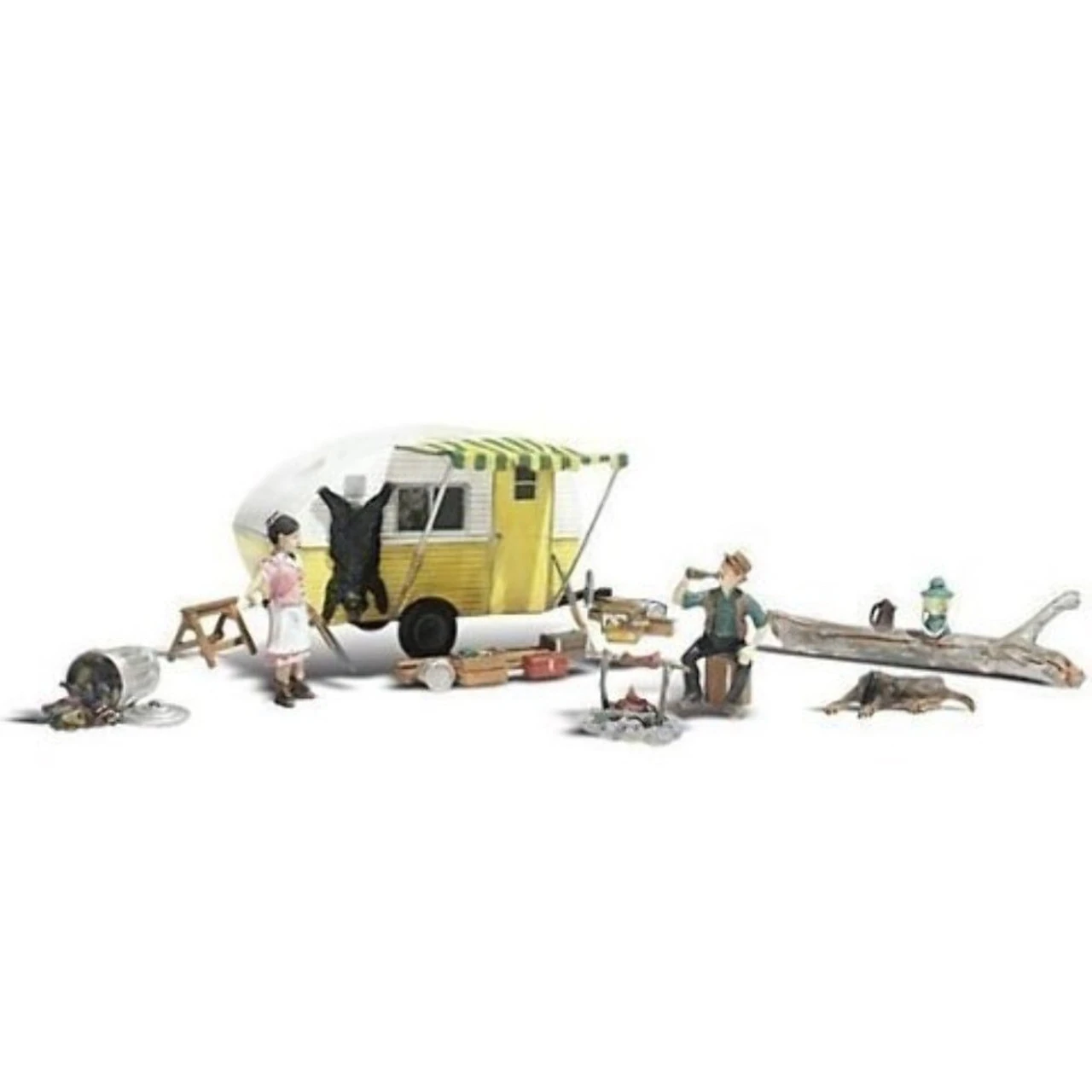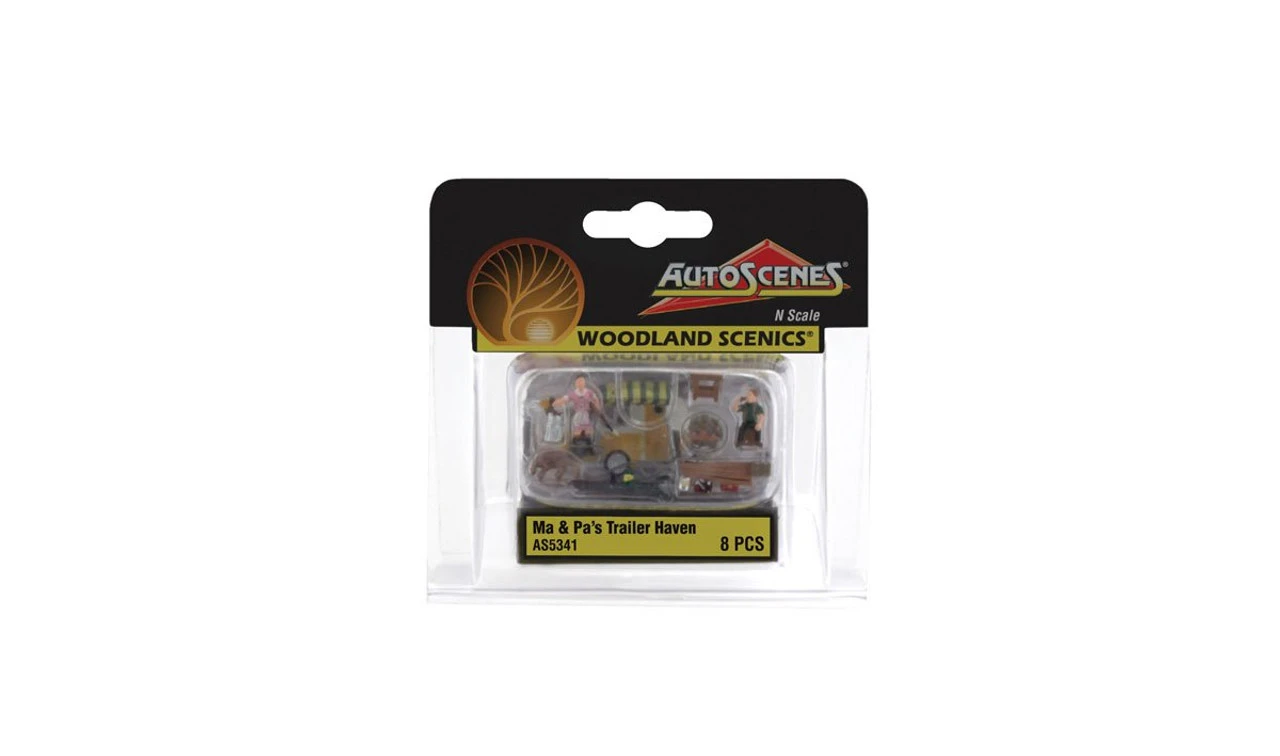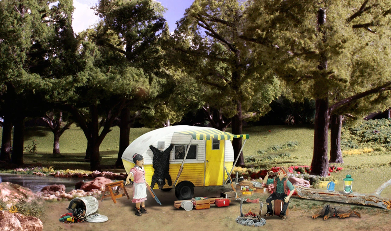 Ma & Pa’s Trailer Haven Camping Trailer w/Figures N scale Woodland Scenics